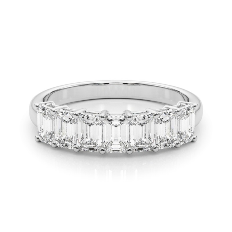 Our 7-Stone Emerald Cut Band can be worn with any of our Solitaires, or alone to signify your loving commitment.  Select yours now from the drop down boxes,  or call