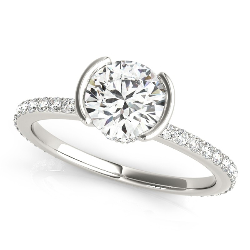 Our Claire Hidden Halo Setting features a round brilliant  Diamond center,