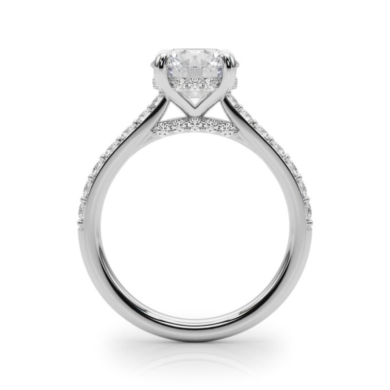 Our Destiny Hidden Halo Setting features a round brilliant  Diamond center,