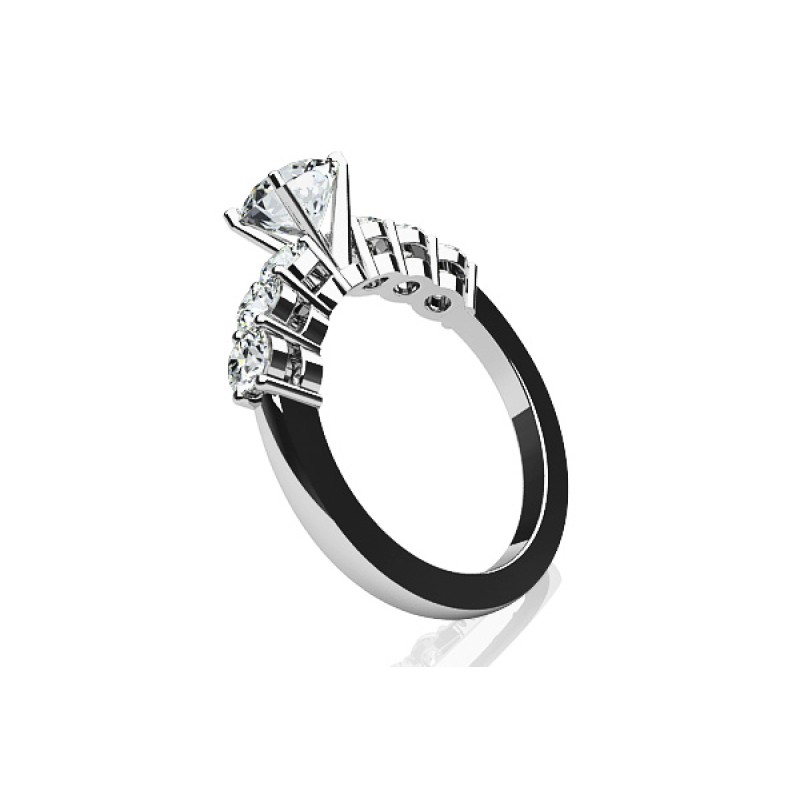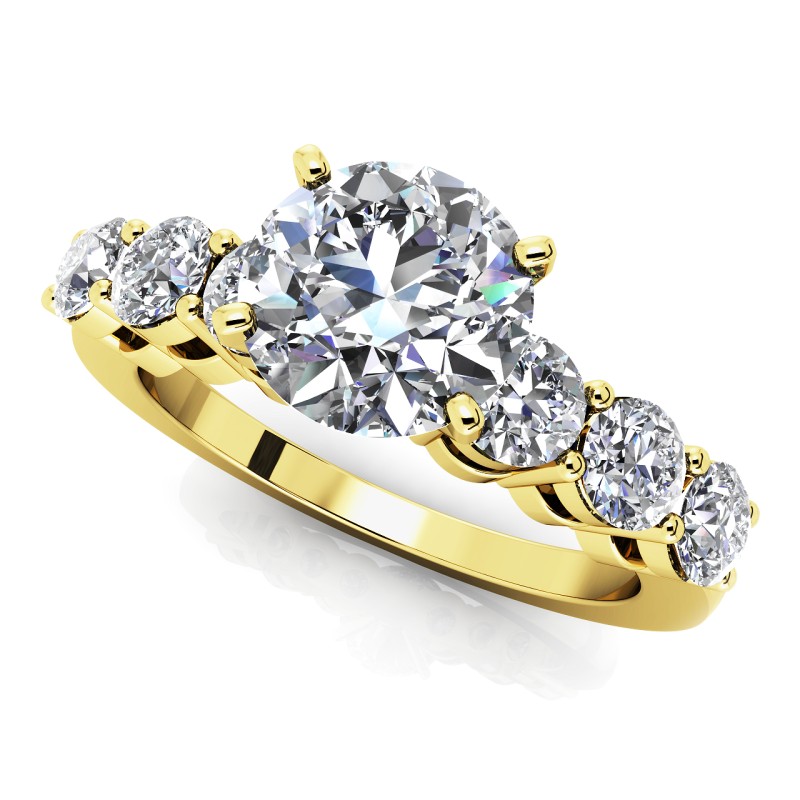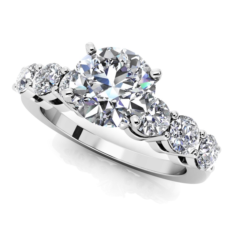 The Seven Stone Ring is is a Solitaire with side diamond accents.  This style has become a timeless classic. Simply stunning! Featuring a Diamond center stone, and is designed to focus your attention on the stone's brilliance. While our picture shows a simple one carat lab diamond, if your budget allows, larger stones show even more brilliantly. Choose your carat size from the drop down stone selection. Price shown is for setting only. Call and speak with one of our GIA trained diamond experts who will assist you in selecting the diamond that is perfect for you. Many other color and clarity and shape combinations are available. *Shown in 14K Gold. Please call customer service for an upgrade to 18K Gold, Palladium or Platinum.