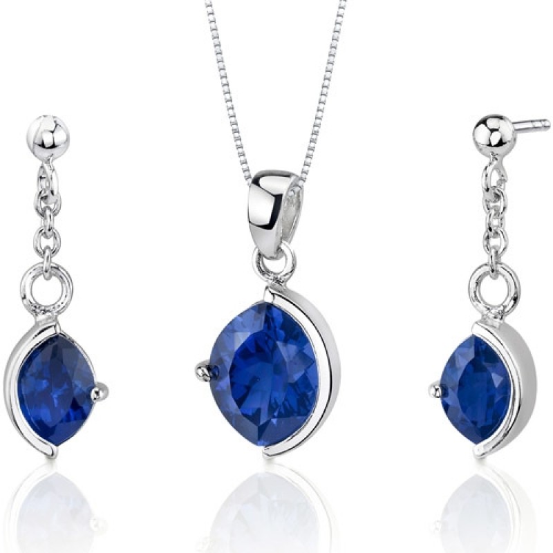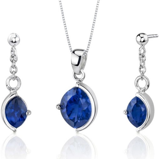 Gemstones: Lab Created Sapphires, Marquise Cut, 6.00 carats total gem weight. Sapphires have a deep Ceylon Blue Hue, Brilliant Sparkle and Clean Clarity. Pendants and Earrings are made from Sterling Silver with a total metal weight of 5.00 grams. The set feature top quality craftsmanship with Rhodium finishing. . Perfect gift for Christmas, Mothers Day, Valentines Day, Birthday, Graduation, Bridesmaids Jewelry.