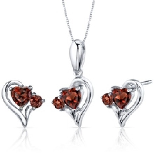 Love and Beauty 2.25 carats Heart Shape Sterling Silver Garnet Pendant Earrings Set Regular Price $170.00