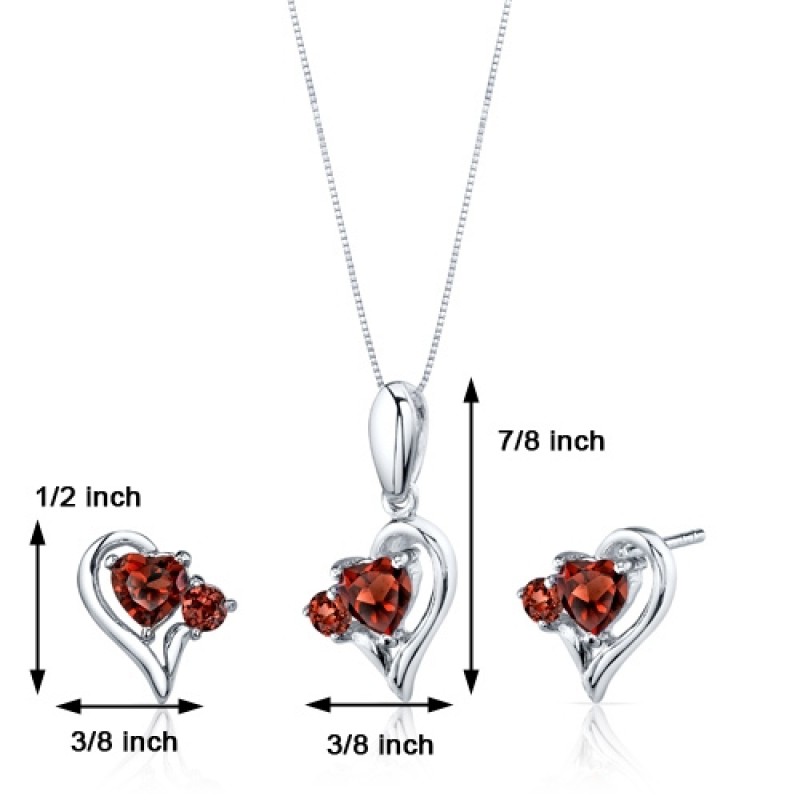 Gemstones: Genuine Garnet, Heart Shape, 2.25 carats total gem weight, Plum Red Hue, Brilliant Sparkle and Clean Clarity. Pendant and Earrings are made from pure .925 Sterling Silver with a total metal weight of 3.40 grams. The set features top quality craftsmanship with Rhodium finishing. . Perfect gift for Christmas, Mothers Day, Valentines Day, Birthday, Graduation, Bridesmaids Jewelry.