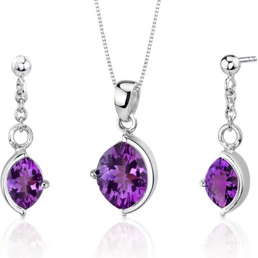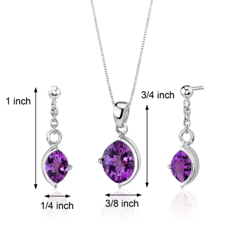 Gemstones: Genuine Amethyst, Marquise Cut 4.00 carats total gem weight. Amethysts have a deep Orchid Purple Hue, Brilliant Sparkle and Clean Clarity. Pendants and Earrings are made from Sterling Silver with a total metal weight of 5.00 grams. The set feature top quality craftsmanship with Rhodium finishing. . Perfect gift for Christmas, Mothers Day, Valentines Day, Birthday, Graduation, Bridesmaids Jewelry..