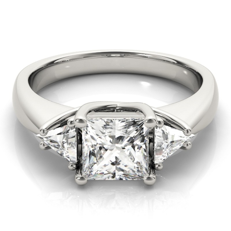 Shown with. total weight as priced. (Your Choice) FREE 2ct. Total Weight 14k Earrings with any Engagement Ring Purchase  The Princess Classic is a classical 3 stone Trellis design with the prongs crossing in the side view. It is available in a number of total weight combinations all the way up to 3 carats. Shown with our pure carcbon Diamonds . Select yours now or call for assistance with one of our GIA trained diamond experts. 800-682-1799.-Call Now For Larger Diamond Sizes.
