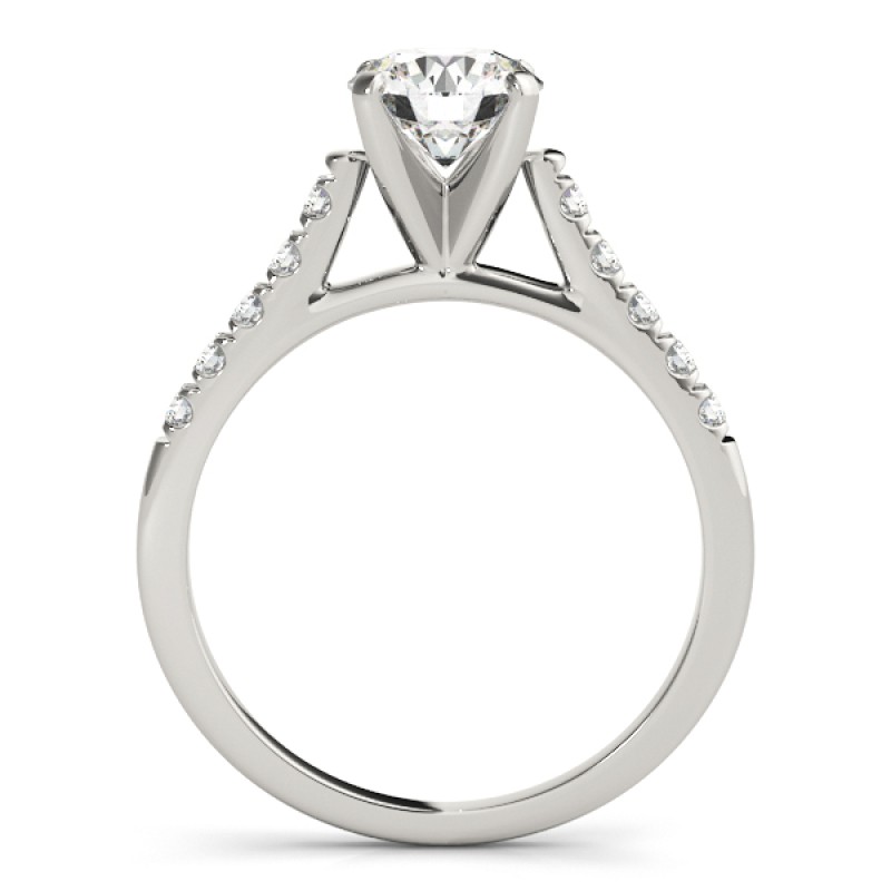 Moonrise features pure carbon diamonds on the sides of the shank, which are F-G in color and VS2-SI1 in clarity, combined with stunning side visuals, and is designed to focus your attention on the stone's brilliance. While our picture shows a simple one carat lab diamond, if your budget allows, larger stones show even more brilliantly. Choose your carat size from the drop down stone selection. Price shown is for setting only. Call and speak with one of our GIA trained diamond experts who will assist you in selecting the diamond that is perfect for you. Many other color and clarity and shape combinations are available. *Shown in 14K Gold. Please call customer service for an upgrade to 18K Gold, Palladium or Platinum. 800-682-1799
