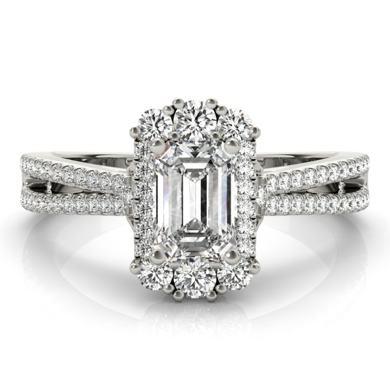 Our Split Shank Emerald or Radiant  fetures  pure carbon diamonds on the Halo