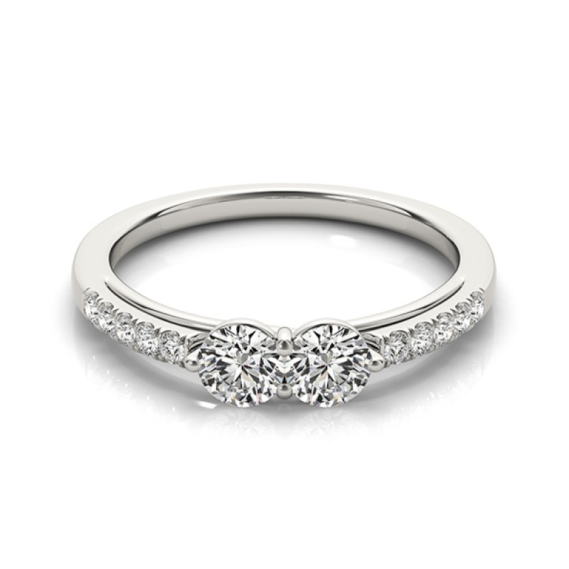 Two Stone Ring-Single Row with two 1/2 carat lab diamonds and complimented by .16ct. of small stones for a total weight of 1.16 carats.